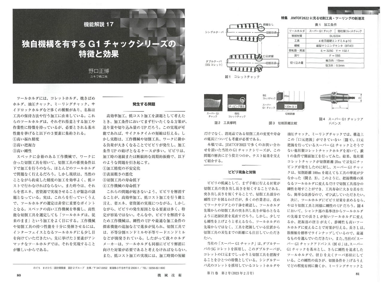 日刊工業新聞社 機械技術2月号にG1チャックシリーズが掲載されました。