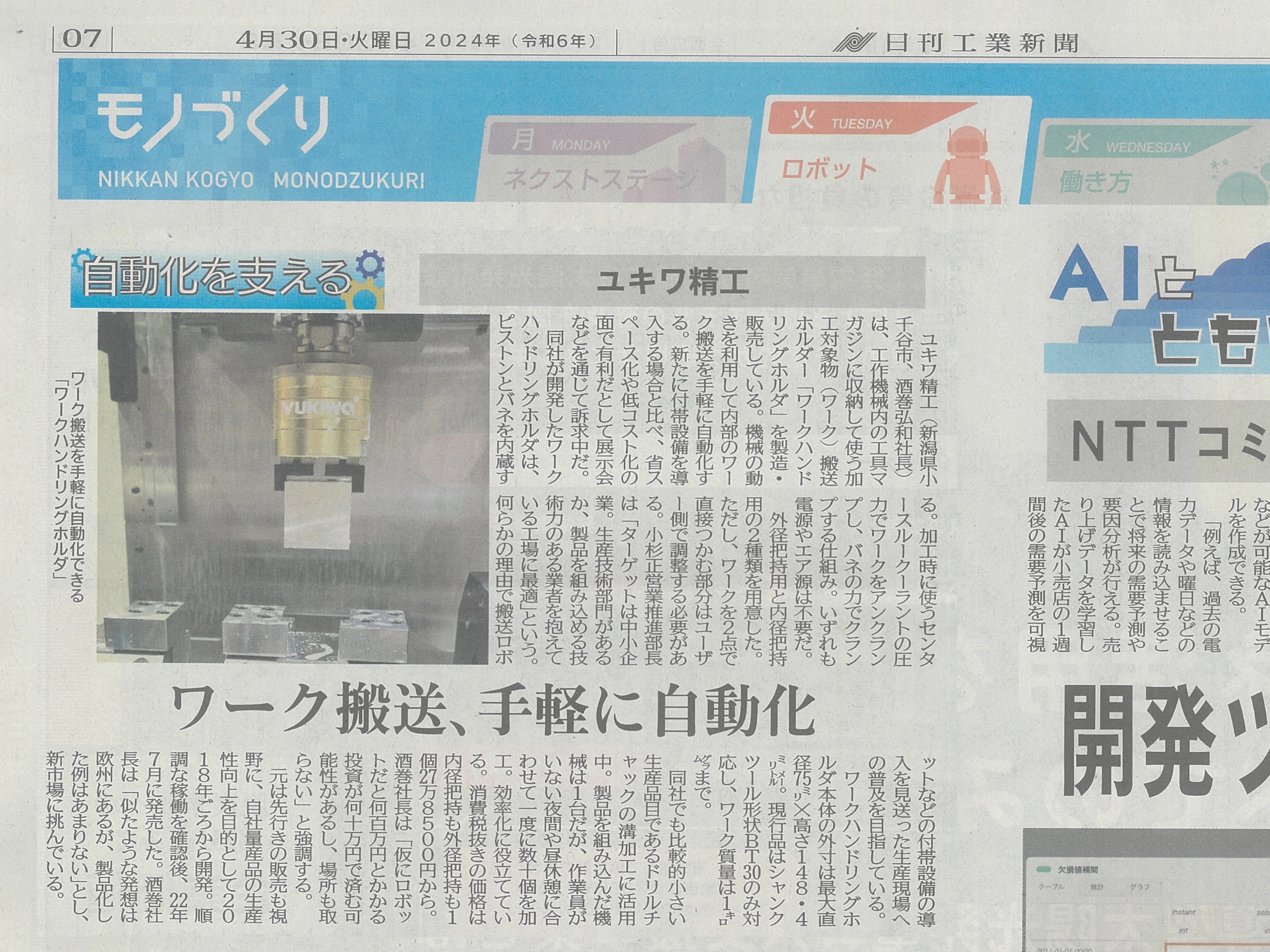 日刊工業新聞 ツーリング特集にスーパーG1チャックが掲載されました。