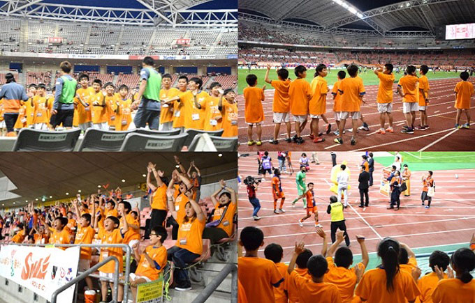 サッカーJリーグ・アルビレックス新潟では、岩手県、福島県を中心とした被災地域の子どもたちにホームゲームを通じて元気や勇気、そして笑顔を届けることを目的とした東日本大震災復興支援事業『がんばろう東北 SMILE PROJECT』を実施されております。被災地にて練習場所の確保が困難となった子どもたちに芝生の上でボールを蹴る楽しさを体感してもらい、スタジアムで感動し、Jリーガーへの夢や憧れを持ち続けてもらえることが活動の目的です。今回、被災地のサッカーチームの子どもたちをアルビレックス新潟のホームゲームにご招待する復興支援活動が9月15日、16日に開催され、当社もこの活動に協賛させていただきましたので、ご報告致します。