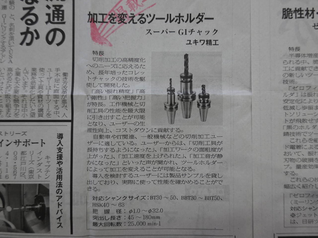 日刊工業新聞 ツーリング特集にスーパーG1チャックが掲載されました。